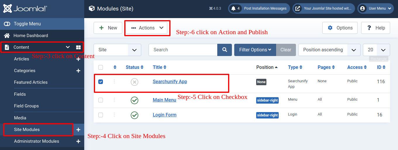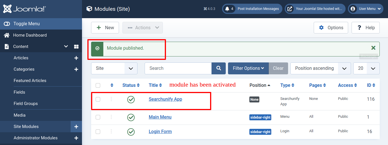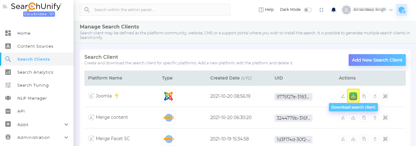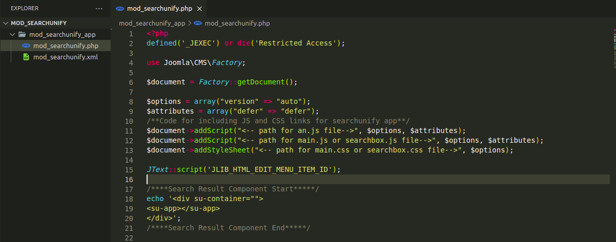 This article gives you a walk-through of how you can install the SearchUnify search client in Joomla. Follow the given instructions to install the SearchUnify search client in your Joomla instance.