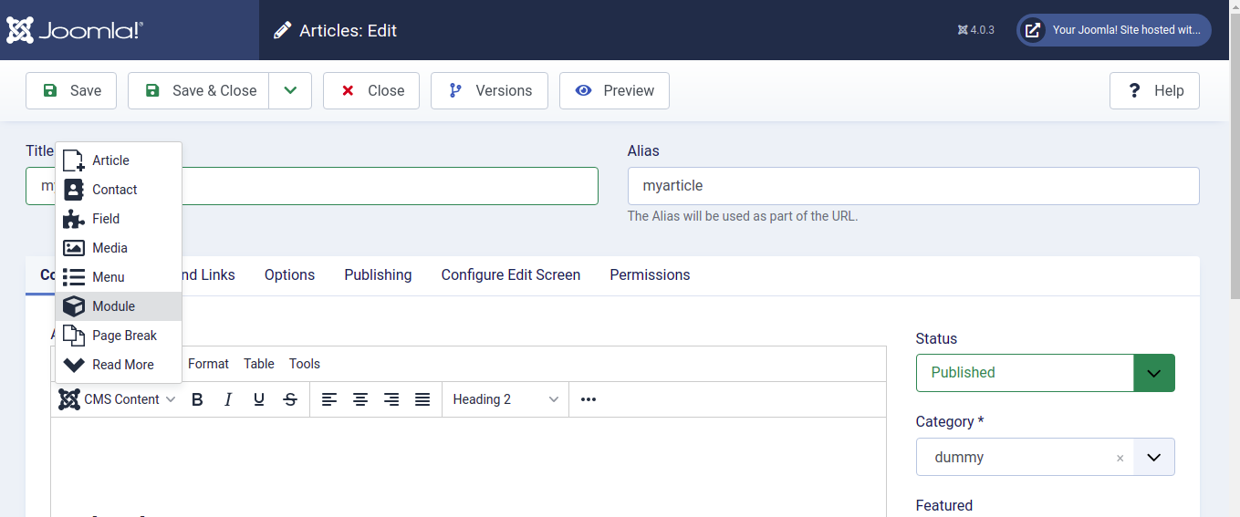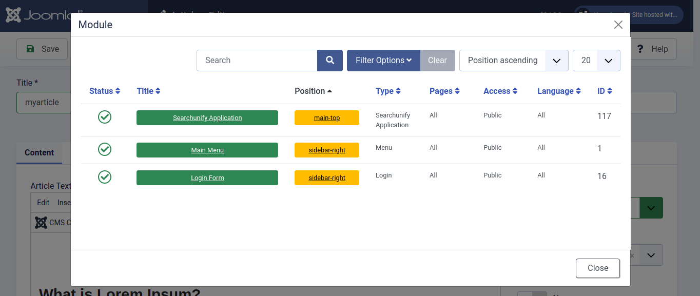 You will now see the Shortcode in your articles like {loadmoduleid 117} for example.