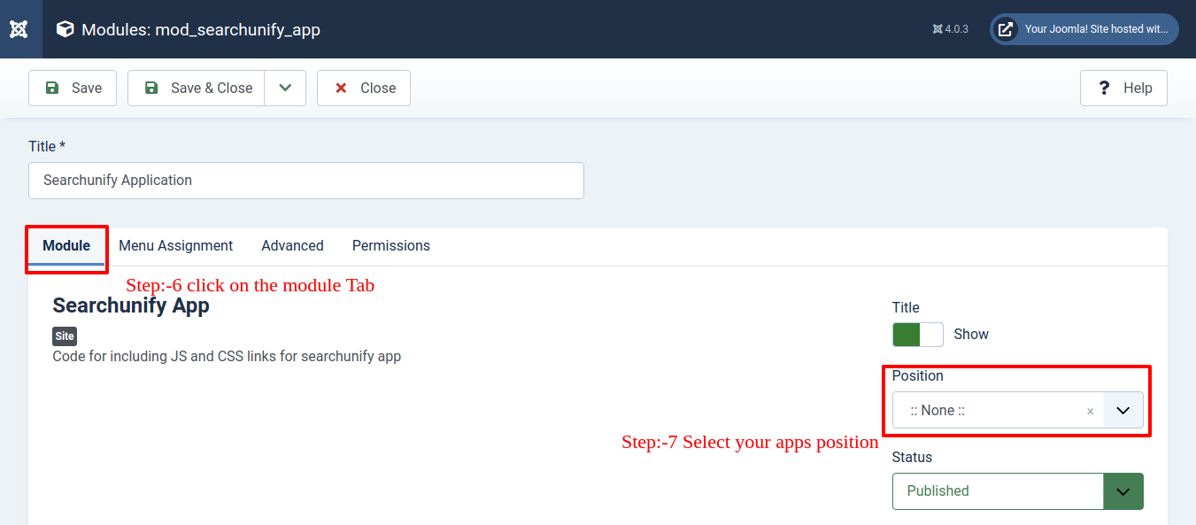 Under the Module sub-tab, select the position of the app using the position drop-down field.