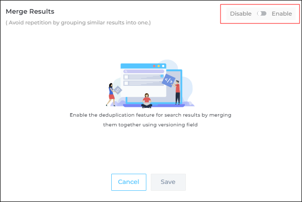 Merge Results allows you to prevent multiple copies of a document from cluttering the search results page by consolidating different versions of an article into a single result.