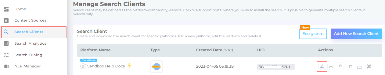 - Go to Search Clients and open a search client for editing.