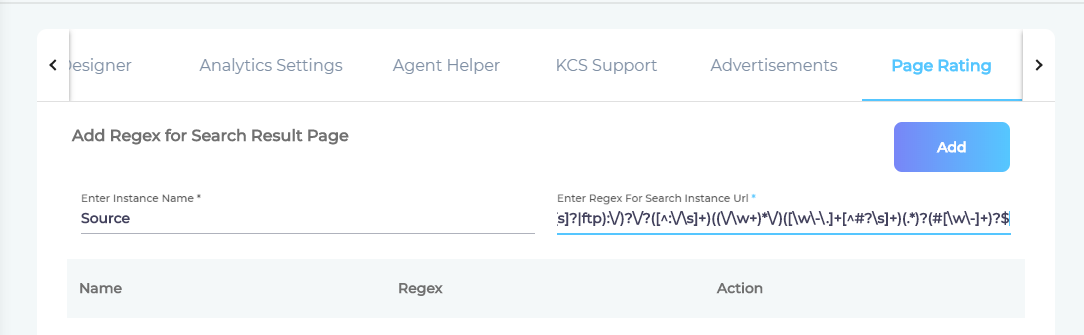 - Define Source in Enter Regex for Search Instance URL and give it a name in Enter Instance Name.