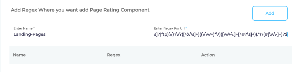 Page Rating asks the feedback question when a user lands from a Source page to a Landing page. Regular expressions are used to define SOURCE and LANDING pages.
