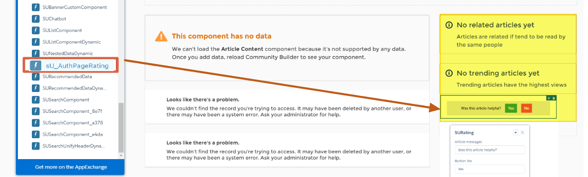 - Drag sU_AuthPageRating to a section where you want to ask for feedback.