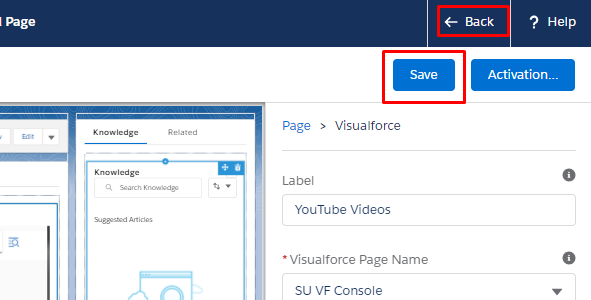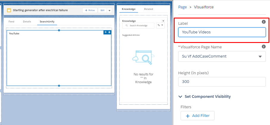 - Give the Visualforce component a label. (We have given it the label YouTube Videos.)