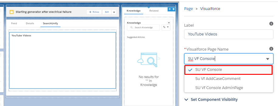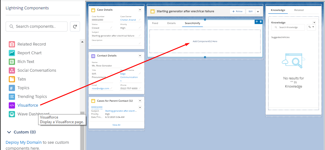 - From the Lighting Components menu, drag Visualforce to SearchUnify.