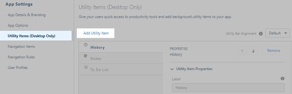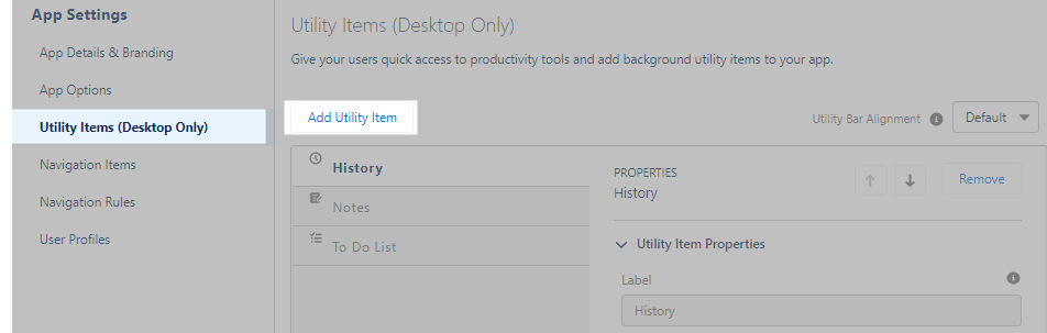 Go to Utility Items and click Add Utility Item.