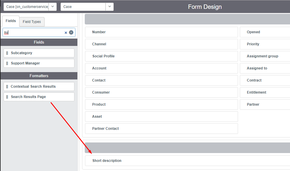 , click From Design in Configure. - Drag Search Results Page in Formatters to the Short Description section.