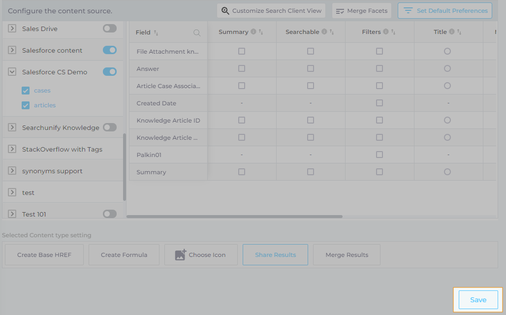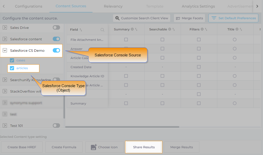 This set-up is only available on Salesforce Console search clients. The tab Share Results cannot be seen on other search clients.