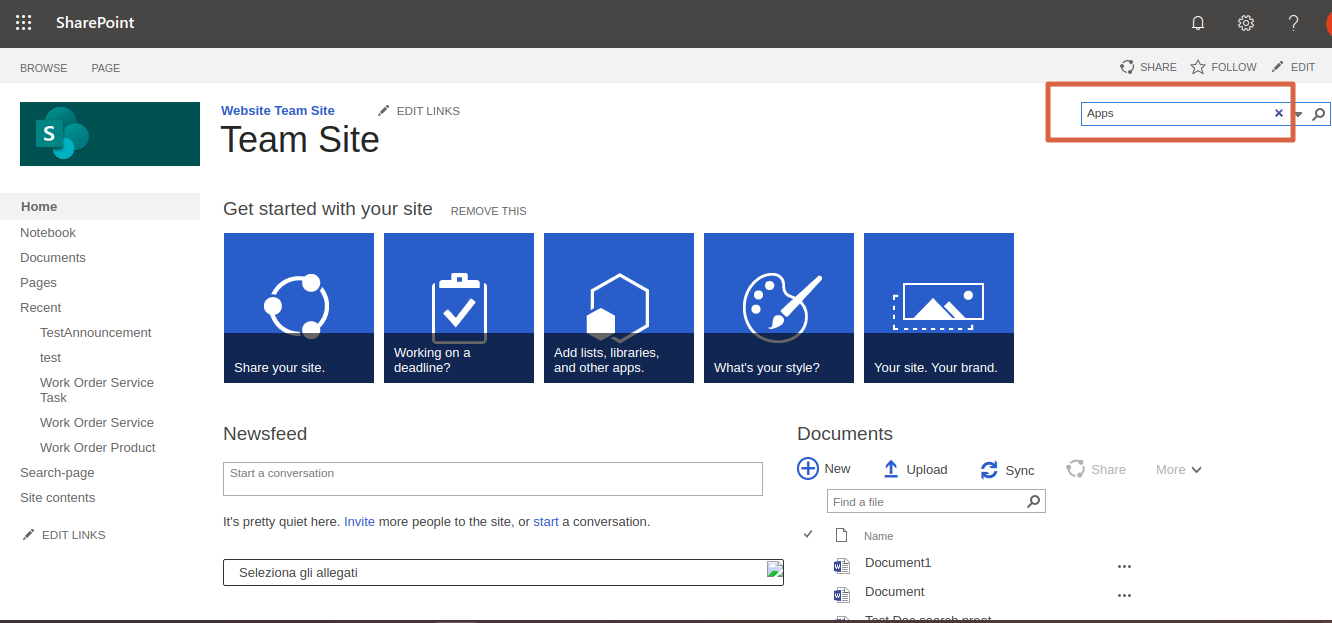 - Log into SharePoint and look up "Apps" in the search box.