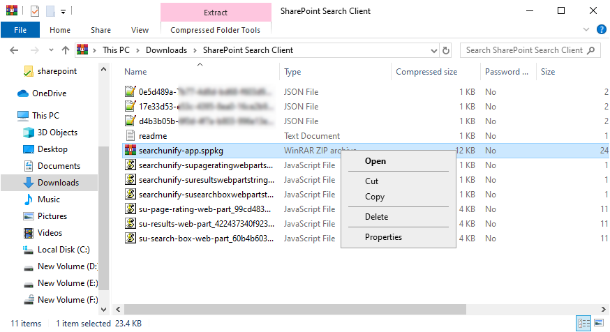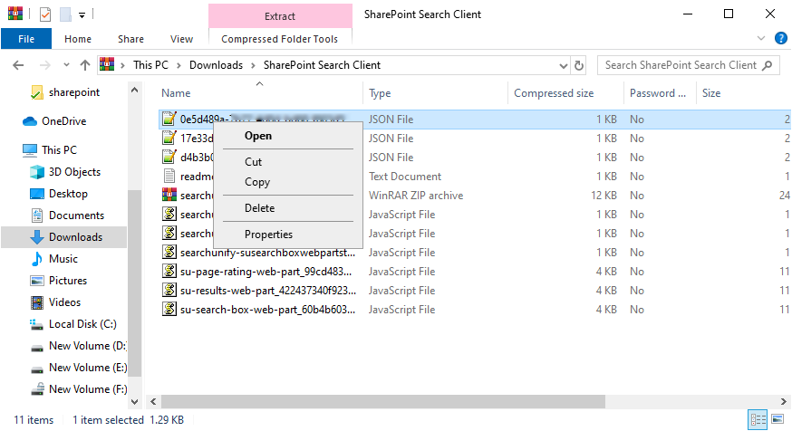, the SharePoint search client will be downloaded as a zip folder.
