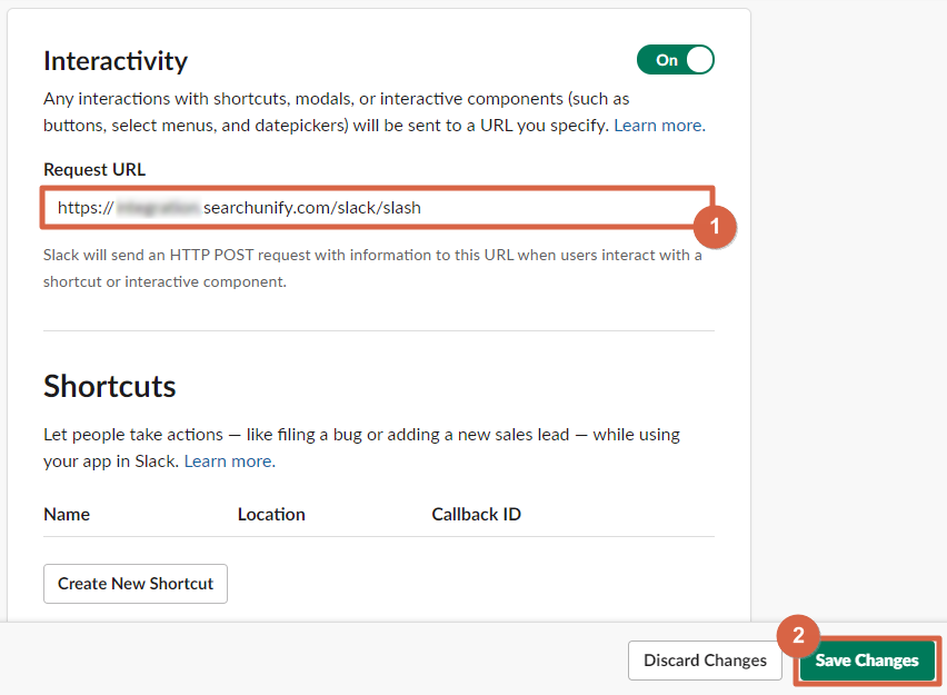 {{BASE_URL}}/slack/slashin Request URL and click Save Changes.