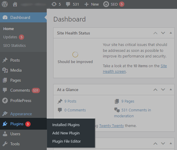Log into WordPress as an admin and navigate to Plugins > Add New Plugin.