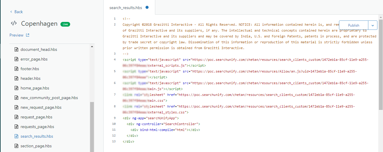 search_results.hbswith the code inindex.html. Unzip the downloaded search client (see Prerequisities) to findindex.html - Navigate to