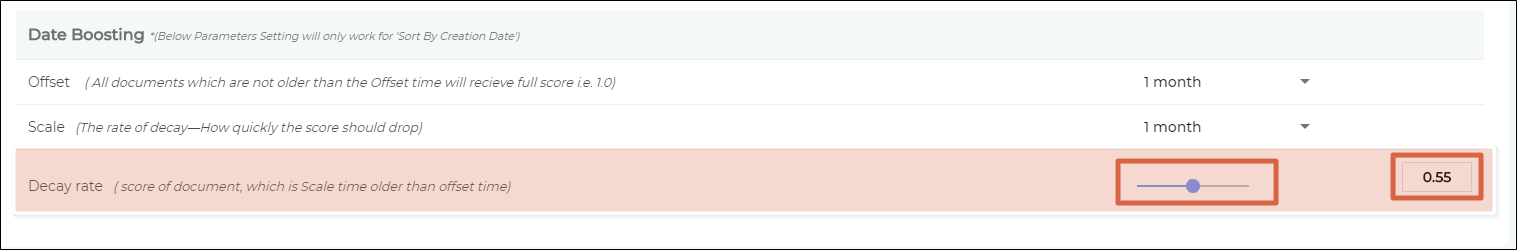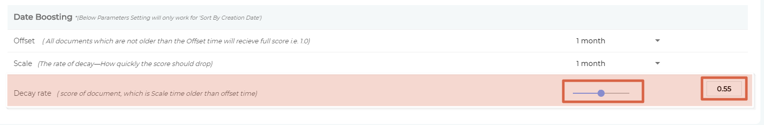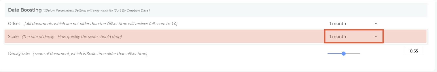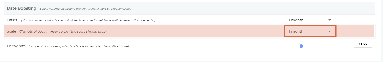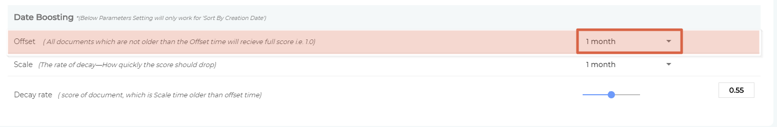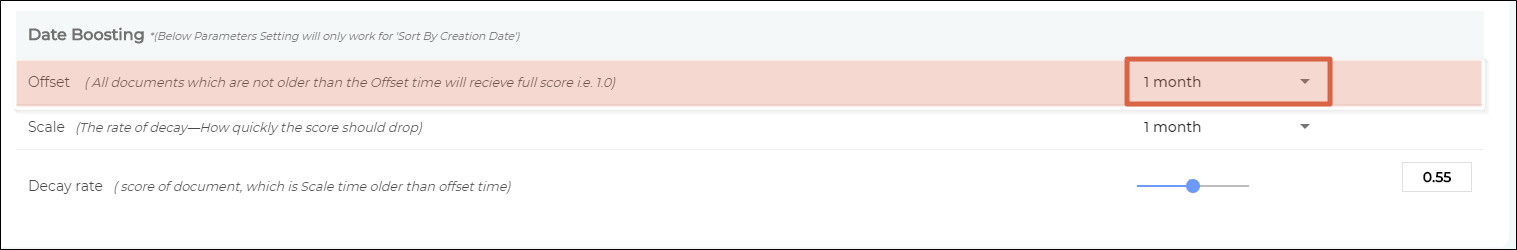 The idea is to increase the relevance score gap between the latest version and old versions by reducing the relevancy of the old versions. Each newly-updated document has a score S and it remains S for a time period, called Offset. You can select an Offset value in the 1-month to 3-year range.