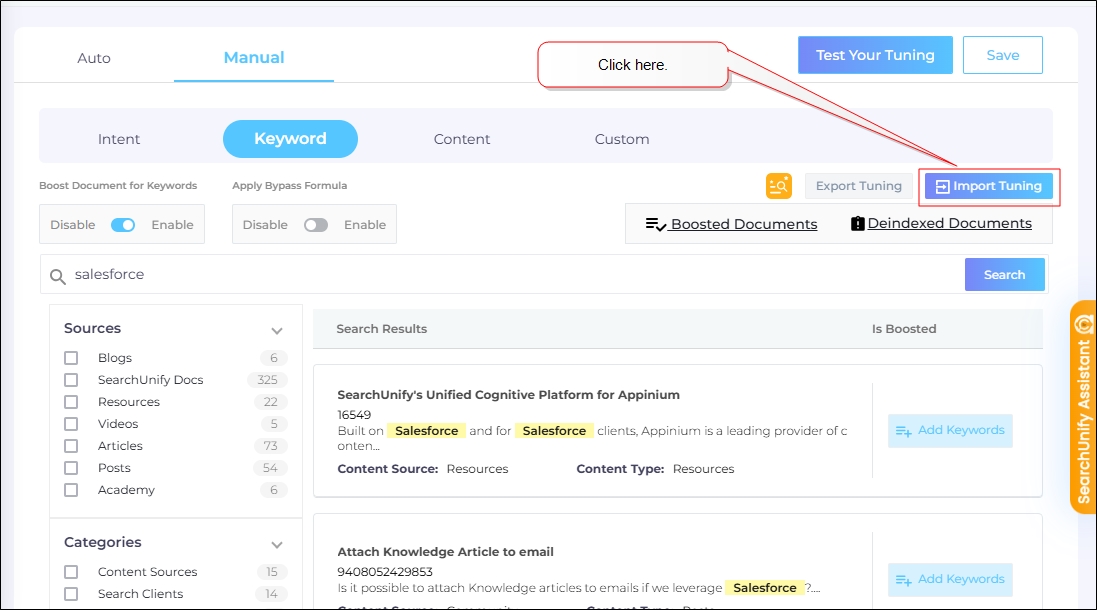Import Tuning simplifies the process of copying tuning settings from one search client to another, saving time when dealing with shared content sources. The feature works only when an article has not been boosted multiple times for the same keyword on a single search client.