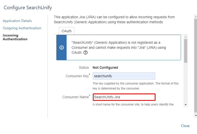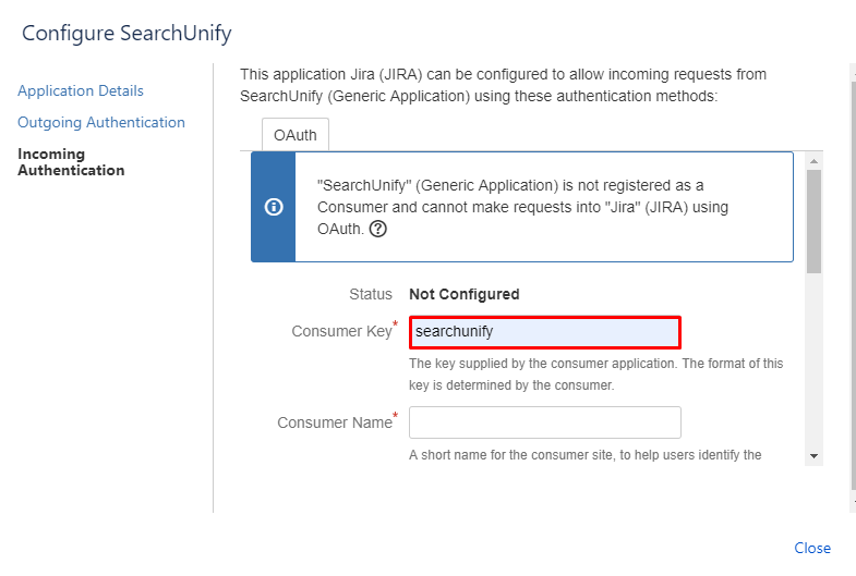 searchunifyin Consumer Key. - Give the app a name in Consumer Name.